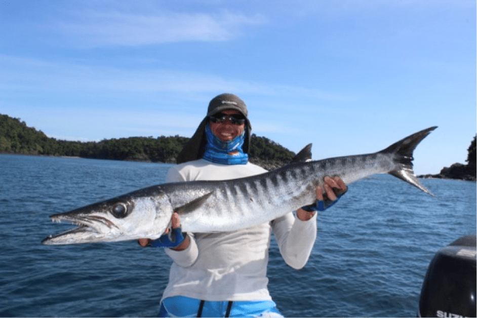 Cette journée sera presque la copie conforme de la journée d’hier, on part plein d’espoir et on prendra pas grand chose, on lance toute la matinée mais sans succès, à part les sempiternelle Orphies et un petit Barra pris par Fifi qui ne repartira pas à l’eau car trop blessé. On en sera même réduits à aller dans une chasse de bonite. Erick décide d’en monter une immédiatement en Catalina dans l’espoir de faire un gros poisson surtout qu’on vient de voir un énorme poisson sauter, on hésite entre un wahoo ou un Marlin.