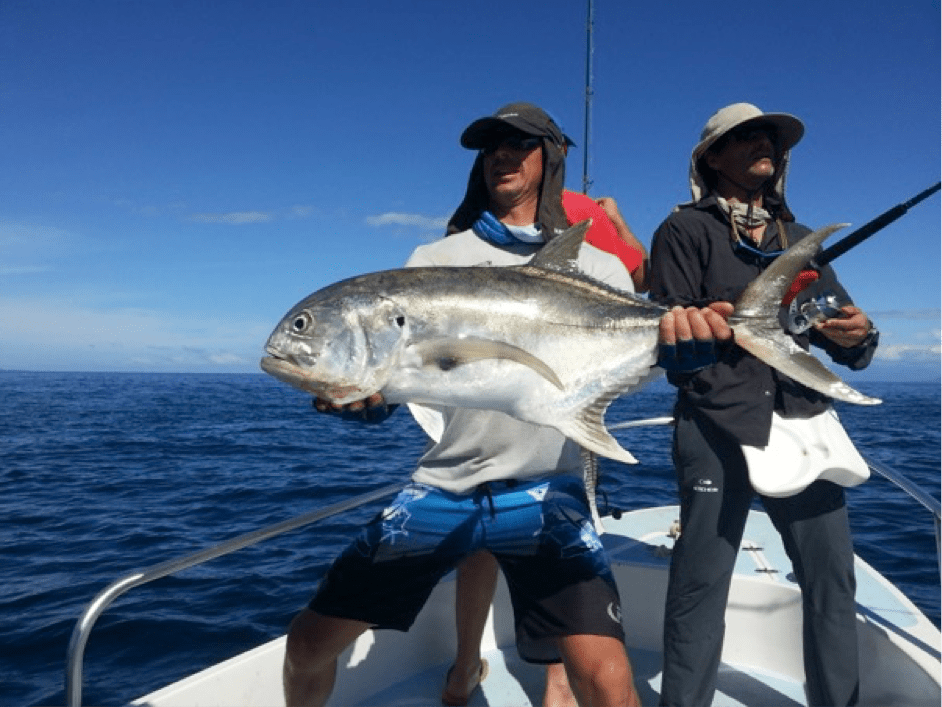 Ma Cubera a relancé les hostilités, toute l’équipe est super motivée, on enfile les spots et les lancers, Je refais une belle Cubera mais elle se décrochera au bateau, pas de photo ! On arrive sur une nouvelle zone et dès le premier lancer on voit que c’est la frénésie, des énormes barras nous attaquent, on fera un doublé au popper avec Eric, deux superbes barras autour des 15 kilos.