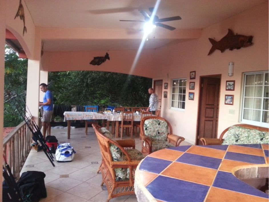 Nous reprenons la route et croisons de superbes paysages, on arrive chez Olivier à 16H30 lui et sa femme Suzy nous accueillent chaleureusement chez eux. C’est une maison et au premier étage se trouve une grande terrasse couverte avec vue sur la baie qui fait office de bar et de salle à manger, des photos de belles prises sont accrochées partout ainsi que 6 ou 7 cadres de record du monde IGFA, ça en jette. Il y a aussi 3 chambres avec chacune climatisation, salle de bain et toilette. Je prends une chambre avec fifi, Eric et le coach en prennent une autre. Olivier nous propose un cocktail et on commence à déballer le matériel. Les discussions vont bon train, Olivier ne nous promet pas du poisson mais il paraît serein et déterminé, on prend confiance et on sent que notre séjour pêche au Panama commence vraiment à partir de maintenant. Il nous aide à choisir notre matos et répond à toutes nos questions avec passion, finalement je lui demande de m’apprendre son nœud de raccord, il me le montre et on le trouve génial (un nœud bimini qui se termine par un nœud en 8 et des clés), tout le monde le fait sauf Fifi qui a ses habitudes. Dorénavant on pêchera comme ça! Tout le monde passe à table, on se régale, Suzy cuisine vraiment très bien et c’est rassasié que nous écoutons les dernières aventures d’Olivier en Amazonie. A 22H30 on va tous se coucher, demain c’est le grand départ.