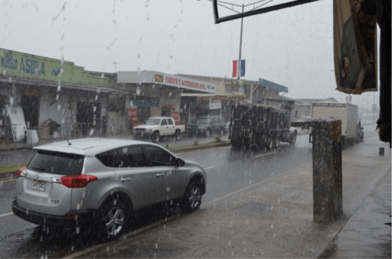 Le lendemain à 7H nous sommes au petit déj, j’annonce à Michelle que nous partons, elle s’en doutait et nous souhaite bonne chance pour la suite. On finit de déjeuner et je cherche un hôtel à David, une vrai ville de 89 000 habitants qui est à 3H30 de route de Santa Catalina et 1H de Boca Chica notre destination finale. On a 2 jours sans rien faire, autant visiter un peu le Panama. On commence à en avoir marre de la jungle, un peu de béton nous fera du bien. Je nous trouve un hôtel 4 étoiles avec piscine, on est en vacances quand même ! A 10H on fait nos adieux à Michelle et Mike et on charge la voiture, pressés de partir on met notre GPS, un smartphone français en mode avion équipé de l’application gratuite « Navigator » avec la carte pré téléchargée depuis la France (si ça peux aider), et on prend la direction de David. A 13H on a super faim et on décide de s’arrêter au premier bouiboui venu qui pourra nous servir a manger, on s’arrête sur une espèce d’aire d’autoroute avec une vieille station, un grand garage à Camion et un restaurant de type cafeteria, on y prendra des Spaghettis, de la salade de pomme de terre et du bœuf bouilli en sauce, la gargote est pas très propre mais c’est pas mauvais et il y a pas mal de monde, on se dit que ça doit pas être si mal.